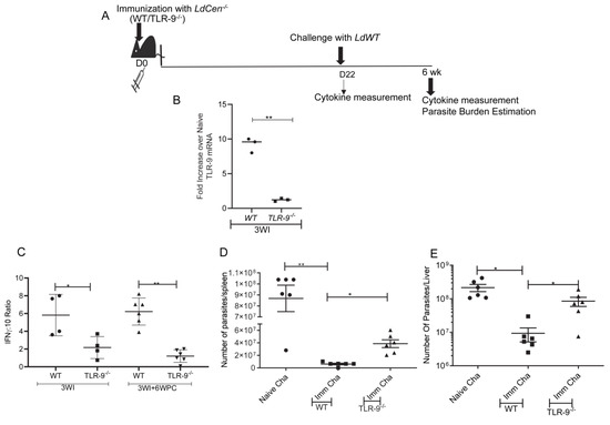 3.5. Absence of TLR-9 Abrogates LdCen−/− Induced Protection against LdWT Infection