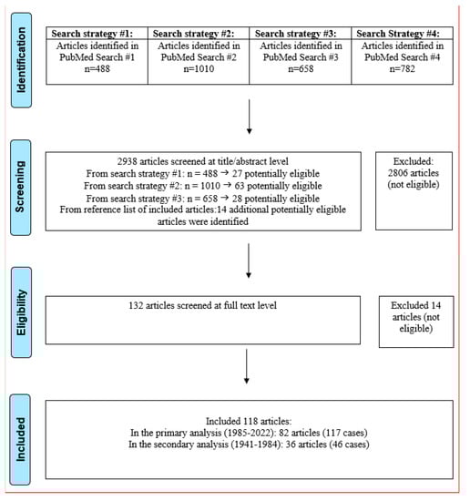 Articles of all study designs were considered eligible. When more than one publication from the same investigators was identified—with overlapping patient cases—we kept only the latest article with the largest number of cases reported. For articles published in languages other than English, French, or Spanish, we used Google translation to extract pertinent information.