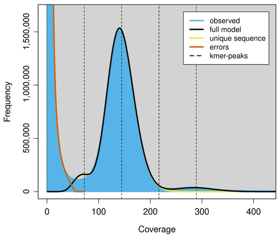 - Ranallo-Benavidez, T.; Jaron, K.; Schatz, M. GenomeScope 2.0 and Smudgeplot for reference-free profiling of polyploid genomes. Nat. Commun. 2020, 11, 1432. [Google Scholar] [CrossRef]
