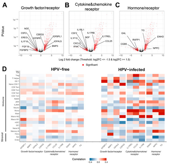 3.3. Secretome Genes and Cognate Receptors Are Differentially Expressed in HPV-Infected HNSCC Patients