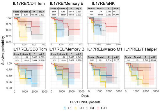 3.5. High Expression of IL17RB and IL17REL and TIL Subset TS Are Associated with Improved Prognosis in HPV-Infected HNSCC Patients