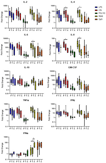 3.4. TLR-Mediated Cytokine Responses in Preterm and Term Infants