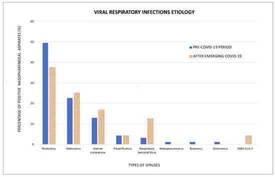 - Vittucci, A.C.; Piccioni, L.; Coltella, L.; Ciarlitto, C.; Antilici, L.; Bozzola, E.; Midulla, F.; Palma, P.; Perno, C.F.; Villani, A. The Disappearance of Respiratory Viruses in Children during the COVID-19 Pandemic. Int. J. Environ. Res. Public Health 2021, 18, 9550. [Google Scholar] [CrossRef]
