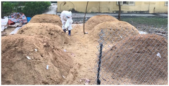 At the Veterinary Hospital of the Vietnam National University of Agriculture (VNUA), 6 static, aerated compost piles were constructed according to the USDA Large Animal Protocols [] (Figure 2).
