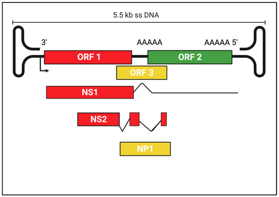 ORF3 encodes the NP1, a highly phosphorylated protein different from proteins of other parvoviruses and involved in RNA processing. NP1 regulates VP-encoding RNAs’ splicing and read-through of the proximal polyadenylation [27,123,135,136,137,138,139]. The great majority of these viruses were identified using metaviromic strategies and they have not been adapted to culture systems [10,11,27].