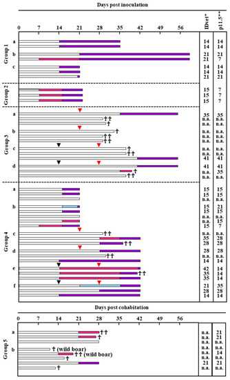 The following supporting information can be downloaded at: https://www.mdpi.com/article/10.3390/pathogens12060774/s1, Table S1: Details of the ASFV inoculation protocol for pigs.