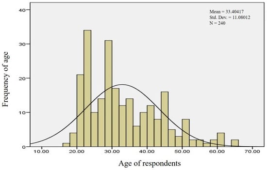 Age was a significant variable in this study, with farmers between the ages of 18 and 70 years old included in the analysis. Over half of the farmers (53.3%) were between the ages of 18 and 30, while 40.8% were between the ages of 31 and 50. Only 5.8% were between the ages of 51 and 70. The mean age of respondents in Sindh was found to be 33.40 years, with a standard deviation of 11.080 (Figure 2). Adult-age farmers were observed to be more interested in adopting new tools and technologies to protect their livestock from ticks and tick-borne diseases.