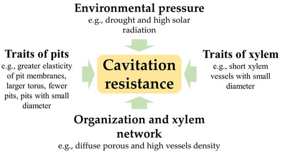 Resistance to cavitation is a complex characteristic determined by numerous interconnected factors not always consistent among the different botanical species in which this resistance has been observed (Figure 1).