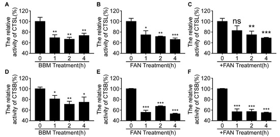 3.6. BBM, FAN, and +FAN Decreased the Activity of CTSL and CTSB