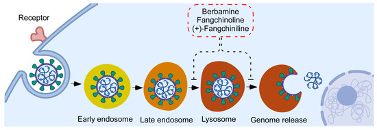 - Huang, L.; Li, H.; Ye, Z.; Xu, Q.; Fu, Q.; Sun, W.; Qi, W.; Yue, J. Berbamine Inhibits Japanese Encephalitis Virus (JEV) Infection by Compromising TPRMLs-Mediated Endolysosomal Trafficking of Low-Density Lipoprotein Receptor (LDLR). Emerg. Microbes Infect. 2021, 10, 1257–1271. [Google Scholar] [CrossRef] [PubMed]