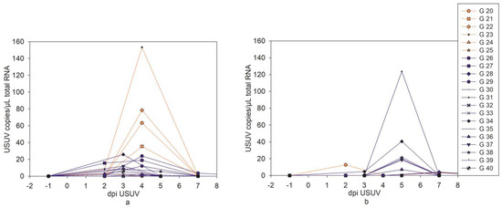 | G 23–25 | USUV | No virus | 37 dpi USUV |