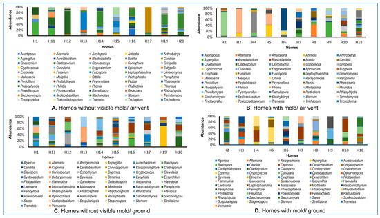 3.3. The Fungal Communities in Air Vent Samples Differ Significantly between Home Types