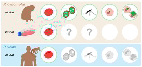 It is not known if this system can be directly used for P. cynomolgi liver stage research. Successful transmission of the in vitro P. cynomolgi Berok line has been shown following an in vivo passage through a monkey [110], but transmission without a monkey passage has not yet been shown (Figure 2). However, the fact that monkey-passaged in vitro P. cynomolgi Berok does give rise to infectious sporozoites demonstrates that the capacity of the vitro line to develop into sexual stages has not been lost.