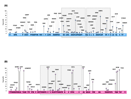 With regards to hRSV-B, a total of twenty-two sites were identified in BA9 lineage, and seven different AA were reported to have high entropy values, pointing out variations at these positions. In particular, the AA at position 270, located within the 20AA duplicated region of HRV2, was reported in India [49] as well as in other countries in the Middle East and the Far East [52,53].