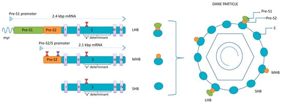 The distinction between phases of chronic HBV infection is crucial in clinical practice, particularly the differentiation of inactive “infection” and active “hepatitis” stages that bring the risk of liver disease progression or reactivation. There are indications that LHB and MHB protein levels may be more helpful for this purpose than total HBsAg. The decline in LHB rations was shown to be a stronger predictor of the “inactive carrier” stage than the decline of total HBsAg level [103]. Since LHB is more present in virions and filamentous SVPs than spherical SVPs, the decrease in the ratio of virions to spherical SVPs in low viraemic phases may be responsible for the observed LHB decline. Also, all immune response components act more effectively against pre-S1-containing particles in these infection stages. Another study confirmed the value of LHB quantitation as a complementary marker to determine different stages of infection [109]. The LHB level was found to be much higher in hepatitis than in infection phases or healthy blood donors. The correlation between LHB and HBV DNA levels varied depending on HBsAg level. It was satisfactory in very low (<0.05 IU/mL) and very high (>1000 IU/mL) HBsAg levels, where the negative predictive value of LHB for HBV DNA was 100%. This correlation is attributed to LHB translation, independent of MHB and SHB. LHB has its own mRNA, which is not transcribed from integrated DNA but only from cccDNA.