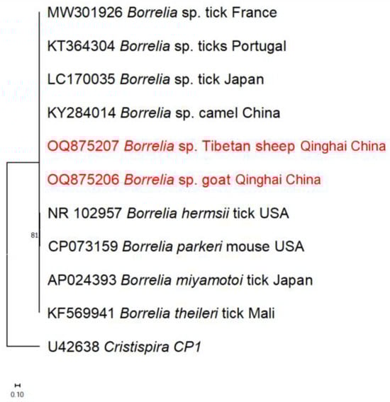 In this study, the presence of B. burgdorferi s.l. was detected in Tibetan sheep and goats. It is worth mentioning that while previous studies have reported various animal species being infected with B. burgdorferi s.l. [18], this study represents the first documented instance of its detection in goats within the Qinghai region.