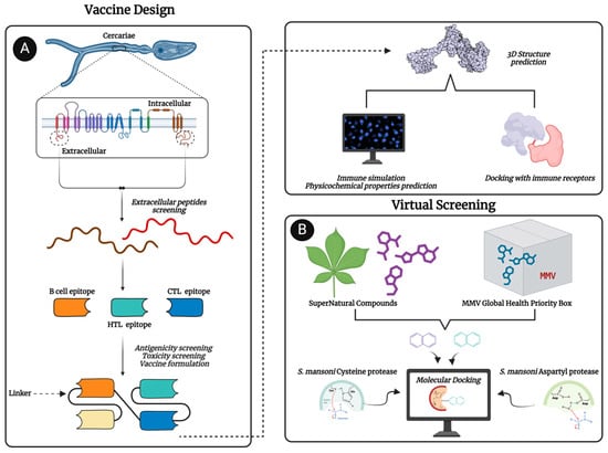 Balogun, E.O.; Joseph, G.I.; Olabode, S.C.; Dayaso, N.A.; Danazumi, A.U.; Bashford-Rogers, R.; Mckerrow, J.H.; Jeelani, G.; Caffrey, C.R. Computational Workflow to Design Novel Vaccine Candidates and Small-Molecule Therapeutics for Schistosomiasis. Pathogens 2024, 13, 850. https://doi.org/10.3390/pathogens13100850