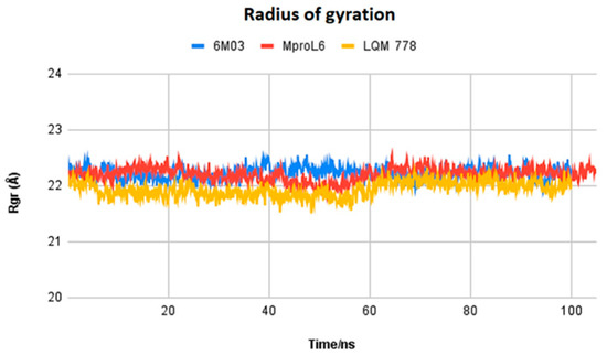 Radius of gyration of the ligands MproL6 and LQM 778 and the apo-protein Mpro.