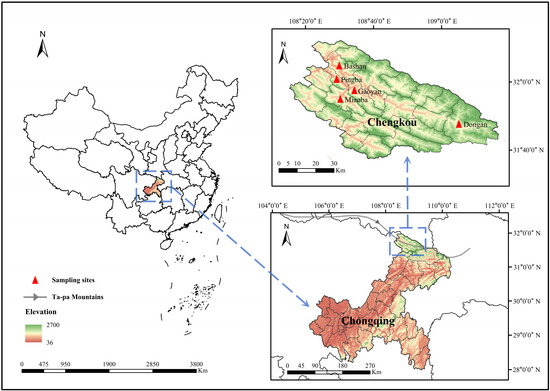 Chongqing (28°10′~32°13′ N, 105°11′~110°11′ E) is located in the southwestern region of China. The municipality features a subtropical monsoon humid climate, characterized by high humidity, and a relatively low annual sunshine duration. Reports of human infections with Lyme disease and babesiosis caused by the species Bo. afzelii and uncharacterized species of Babesia, respectively, within the region of Chongqing highlight the possible risks associated with tick-borne pathogens [16,17]. In recent years, the expansion of tea cultivation, livestock breeding, and agricultural operations may serve to heighten the risk of infection among both humans and domestic animals. Nevertheless, the 2019 National Tick Monitoring Report of China has revealed a significant knowledge gap in ticks and their associated pathogens due to the lack of effective sampling strategies and robust surveillance mechanisms [18]. To determine the prevalence and biodiversity of ticks and vector-borne agents, and to devise an effective sampling strategy for subsequent surveillance efforts within the region, our team conducted tick surveillance in Chengkou County, Chongqing.