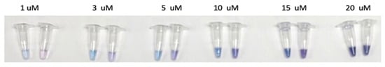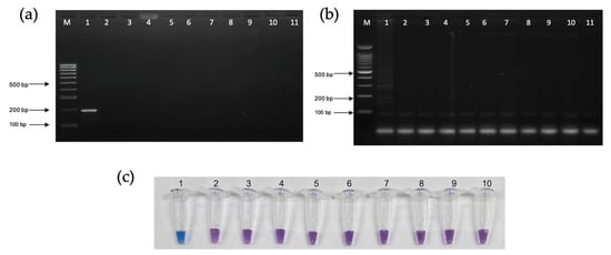 - Tomita, N.; Mori, Y.; Kanda, H.; Notomi, T. Loop-mediated isothermal amplification (LAMP) of gene sequences and simple visual detection of products. Nat. Protoc. 2008, 3, 877–882. [Google Scholar] [CrossRef]