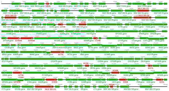 - Yang, J.J.; Zhu, R.N.; Zhang, Y.Y.; Zhou, X.T.; Yue, H.X.; Li, Q.X.; Ke, J.N.; Wang, Y.; Miao, F.M.; Chen, T.; et al. Deleting the C84L Gene from the Virulent African Swine Fever Virus SY18 Does Not Affect Its Replication in Porcine Primary Macrophages but Reduces Its Virulence in Swine. Pathogens 2024, 13, 103. [Google Scholar] [CrossRef]