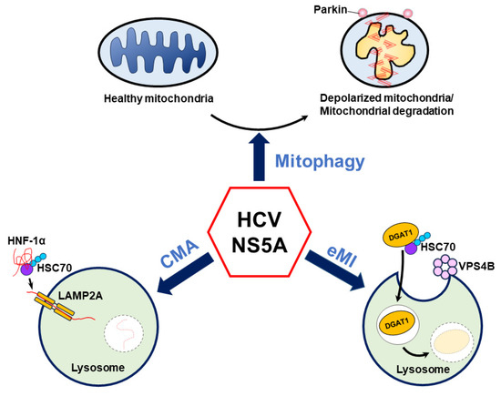- Chu, J.Y.K.; Ou, J.J. Autophagy in HCV Replication and Protein Trafficking. Int. J. Mol. Sci. 2021, 22, 1089. [Google Scholar] [CrossRef]