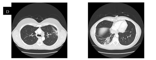 - Reimel, B.A.; Krishnadasen, B.; Cuschieri, J.; Klein, M.B.; Gross, J.; Karmy-Jones, R. Surgical management of acute necrotizing lung infections. Can. Respir. J. 2006, 13, 369–373. [Google Scholar] [CrossRef]