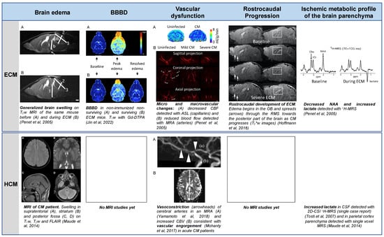 | Brain swelling and vasogenic edema | Increased brain volume | [2,39,41,67] |
