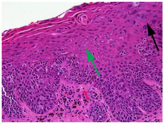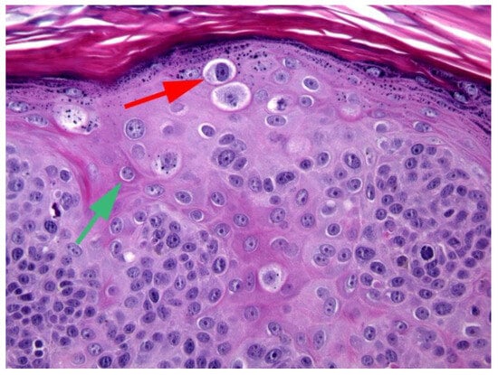- Küsters-Vandevelde, H.V.N.; de Koning, M.N.C.; Melchers, W.J.G.; Quint, W.G.V.; de Wilde, P.C.M.; de Jong, E.; van de Kerkhof, P.C.M.; Blokx, W.A.M. Expression of p14ARF, p16INK4a and p53 in relation to HPV in (pre-)malignant squamous skin tumours. J. Cell. Mol. Med. 2009, 13, 2148–2157. [Google Scholar] [CrossRef]