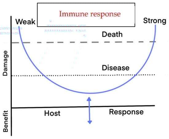 Damage/response framework. The more extreme the host response is (weaker or stronger) the worse the outcome.