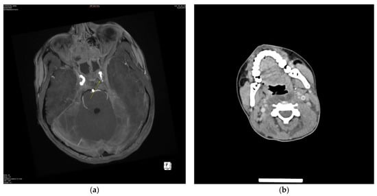 - Sexton, G.P.; Nae, A.; Cleere, E.F.; O’Riordan, I.; O’Neill, J.P.; Lacy, P.D.; Amin, M.; Colreavy, M.; Caird, J.; Crimmins, D. Concurrent Management of Suppurative Intracranial Complications of Sinusitis and Acute Otitis Media in Children. Int. J. Pediatr. Otorhinolaryngol. 2022, 156, 111093. [Google Scholar] [CrossRef]