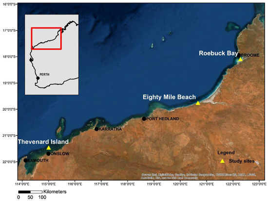 Six of the world’s seven sea turtle species are found in Australia and inhabit the state waters of Western Australia (WA) [1]. All six species are listed as threatened fauna and protected under state and commonwealth legislation. Flatback (Natator depressus) and green (Chelonia mydas) turtles are listed as ‘vulnerable,’ while olive ridley turtles (Lepidochelys olivacea) are listed as ‘endangered’ at both state and federal levels. Natator depressus is endemic to Australia and is listed as ‘data deficient,’ while C. mydas is listed as ‘endangered’ and L. olivacea is listed as ‘vulnerable’ by the International Union for the Conservation of Nature [2].