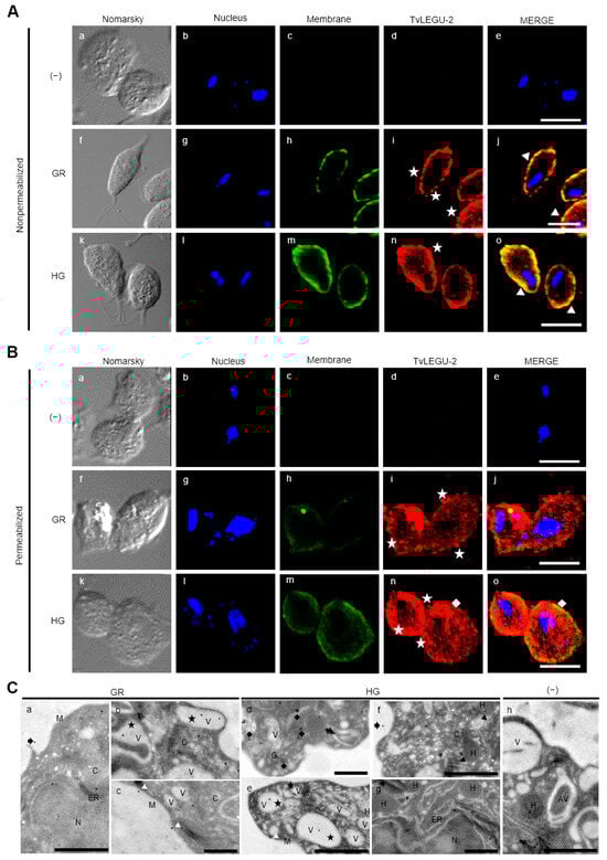 3.4. Subcellular Localization of TvLEGU-2 in T. vaginalis under Different Glucose Conditions