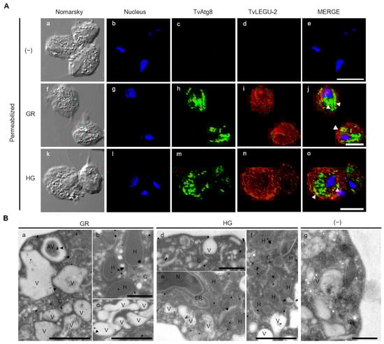 - Hernández-García, M.S.; Miranda-Ozuna, J.F.T.; Salazar-Villatoro, L.; Vázquez-Calzada, C.; Ávila-González, L.; González-Robles, A.; Ortega-López, J.; Arroyo, R. Biogenesis of Autophagosome in Trichomonas vaginalis during Macroautophagy Induced by Rapamycin-treatment and Iron or Glucose Starvation Conditions. J. Eukaryot. Microbiol. 2019, 66, 654–669. [Google Scholar] [CrossRef] [PubMed]