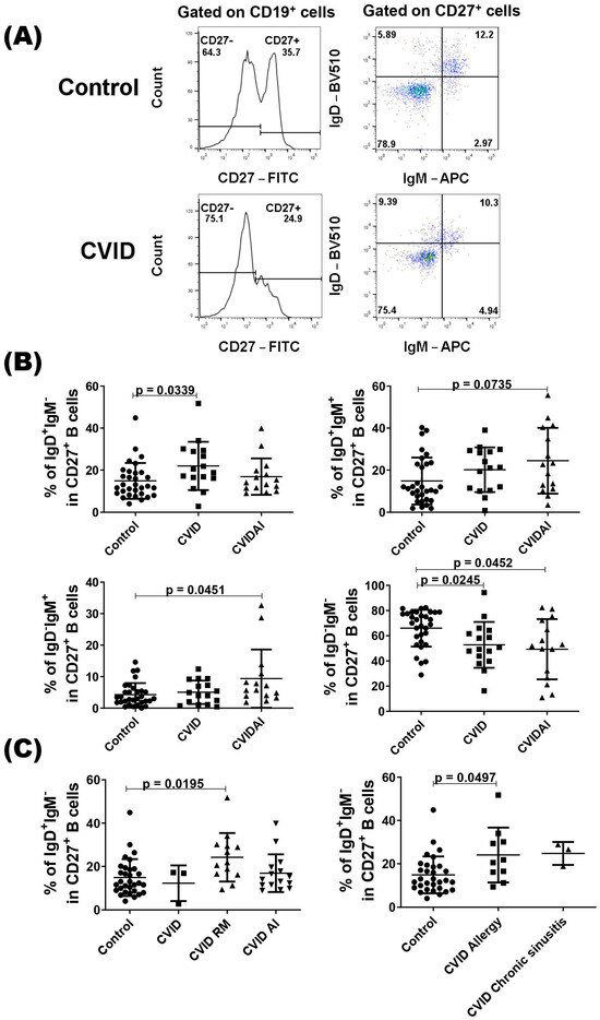 3.3. IgD+IgM− Memory B Cells Is Increased in CVID Patients with Respiratory Manifestations
