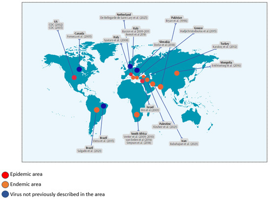 - Chancey, C.; Grinev, A.; Volkova, E.; Rios, M. The global ecology and epidemiology of West Nile virus. Biomed. Res. Int. 2015, 2015, 376230. [Google Scholar] [CrossRef]