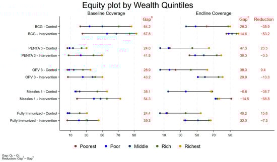 Importantly, an equity analysis showed that the intervention was successful in closing the equity gap for immunization coverage, especially for BCG, OPV 3, and Measles 1, demonstrating that an effective outreach program accompanied by community mobilization was instrumental in reducing equity-related barriers (Figure 2).