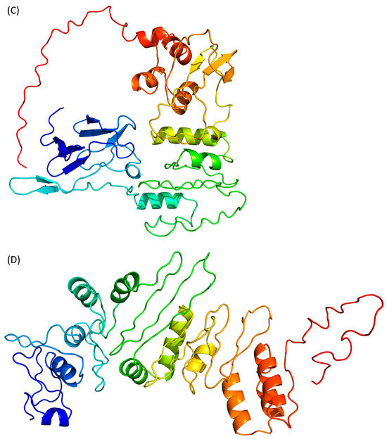 - Jumper, J.; Evans, R.; Pritzel, A.; Green, T.; Figurnov, M.; Ronneberger, O.; Tunyasuvunakool, K.; Bates, R.; Zidek, A.; Potapenko, A.; et al. Highly accurate protein structure prediction with AlphaFold. Nature 2021, 596, 583–589. [Google Scholar] [CrossRef]