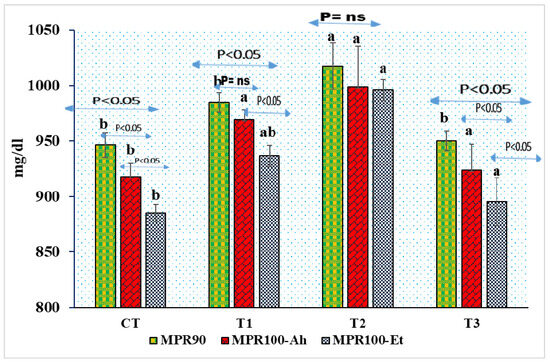 Ref. [29] discovered that when channel catfish were fed a glucan-based diet, the number of erythrocytes was considerably greater (p < 0.05) than when they were fed a control diet. The presence of leucocytes is known to help trigger the immune system in rohu following immunostimulation application [24,28,30]. The antimicrobial properties of traditional herbs, such as garlic, are supported by an increase in total white blood cells, and other cell types, upon feeding of herbs [31,32]. The low level of hemoglobin in treatments could reflect physiological alternations to a lower demand of oxygen and the substrate for metabolism in an oxygen-stressed environment thereby leads to fluctuations in the pH of the blood [33]. The decrease in hemoglobin levels in the T3 group may be due to a number of factors, including hemopoiesis exhaustion under hypoxic conditions, breakdown of blood cells due to temperature and salt stress, or infection with bacteria such as Aeromonas hydrophila or Edwardsiella tarda. The results of the present study suggest that dietary TABP can improve the hematological parameters of L. rohita juveniles, but that the optimal dose may need to be lower than 15 g TABP/kg feed to avoid negative effects on hemoglobin levels.