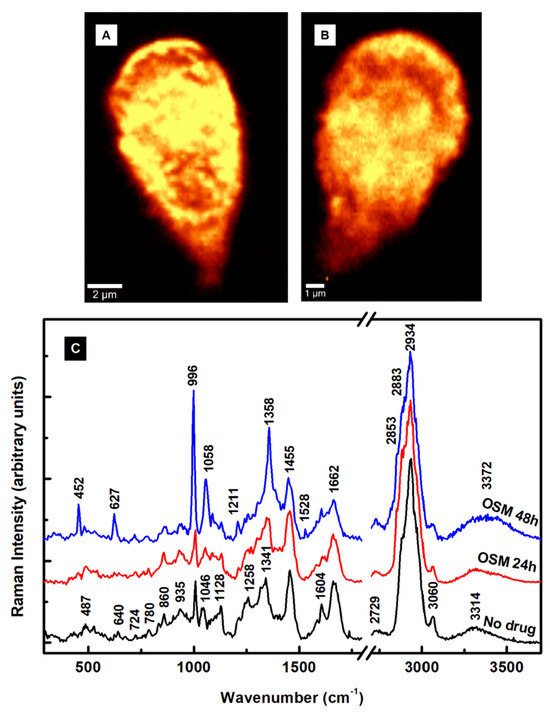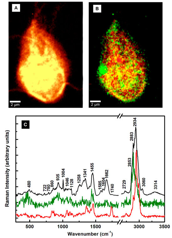 - Pezzotti, G. Raman spectroscopy in cell biology and microbiology. J. Raman Spectrosc. 2021, 52, 2348–2443. [Google Scholar] [CrossRef]