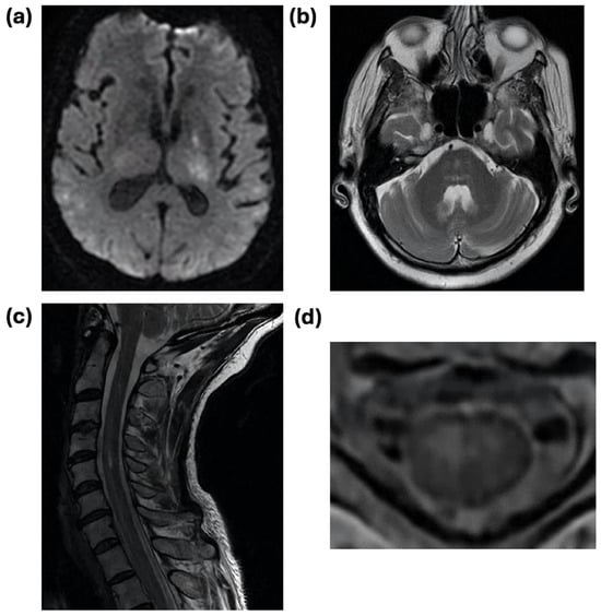 - Petropoulou, K.A.; Gordon, S.M.; Prayson, R.A.; Ruggierri, P.M. West Nile virus meningoencephalitis: MR imaging findings. Am. J. Neuroradiol. 2005, 26, 1986–1995. [Google Scholar] [PubMed]