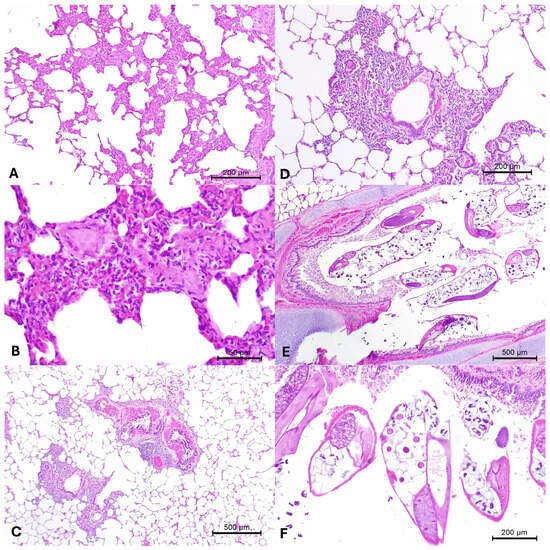 - Caswell, J.L.; Williams, K.J. Respiratory system. In Jubb, Kennedy, and Palmer’s Pathology of Domestic Animals, 5th ed.; Maxie, M.G., Ed.; Saunders/Elsevier: Philadelphia, PA, USA, 2016; Volume 2, pp. 465–591. [Google Scholar]