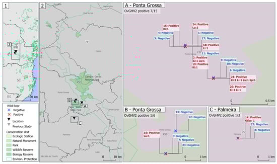| Mesoregions of Paraná State | Municipalities | OvGHV2 in Free-Ranging Wild Boars | Source | ||