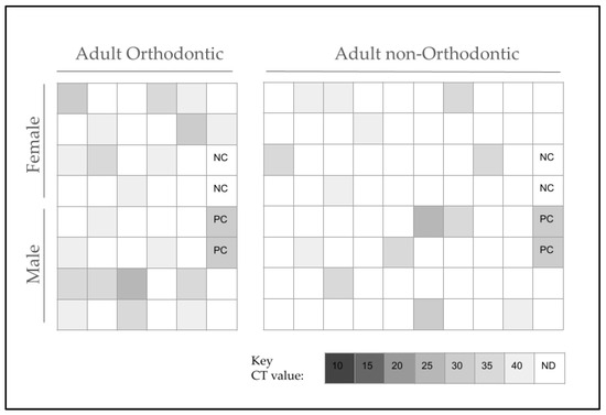 - Al-Melh, M.A.; Bhardwaj, R.G.; Pauline, E.M.; Karched, M. Real-time polymerase chain reaction quantification of the salivary levels of cariogenic bacteria in patients with orthodontic fixed appliances. Clin. Exp. Dent. Res. 2020, 6, 328–335. [Google Scholar] [CrossRef]