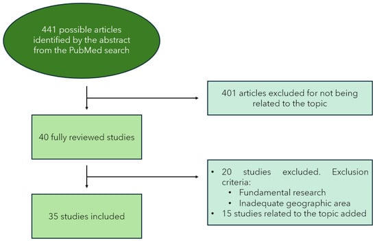 During the reading of the articles and writing of the work, some of the initially selected articles were discarded, and new ones related to the topics discussed in the paper were added (Figure 1).