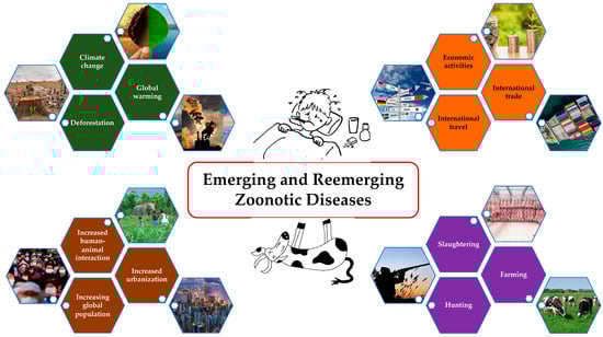 - Di Bari, C.; Venkateswaran, N.; Fastl, C.; Gabriël, S.; Grace, D.; Havelaar, A.H.; Huntington, B.; Patterson, G.T.; Rushton, J.; Speybroeck, N.; et al. The Global Burden of Neglected Zoonotic Diseases: Current State of Evidence. One Health 2023, 17, 100595. [Google Scholar] [CrossRef]