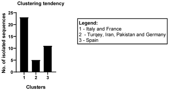 Due to the lack of data, it was difficult to perform the HDV-1 subgenotyping. However, the phylogenetic tree built on the basis of isolates published in GenBank revealed a certain grouping tendency of the Romanian isolates. Three potential clusters seemed to emerge among the Romanian isolates: the first cluster is related to isolates from Italy and France; the second cluster is related to isolates originating from Turkey, Iran, Pakistan, and one from Germany; the third cluster is similar to isolates from Spain (Figure 6 and Figure 7). This broad clustering illustrates the intense migration phenomenon that has been taking place lately from and to Western Europe or the Middle East.