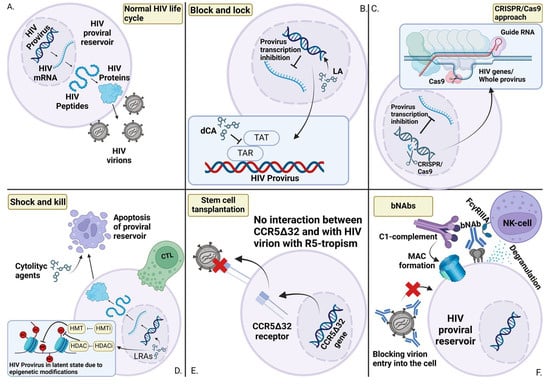 - Vansant, G.; Bruggemans, A.; Janssens, J. Block-And-Lock Strategies to Cure HIV Infection. Viruses 2020, 12, 84. [Google Scholar] [CrossRef] [PubMed]