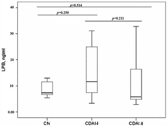 LPS level in CDAI-I, CDAI-II, and control groups (CN).