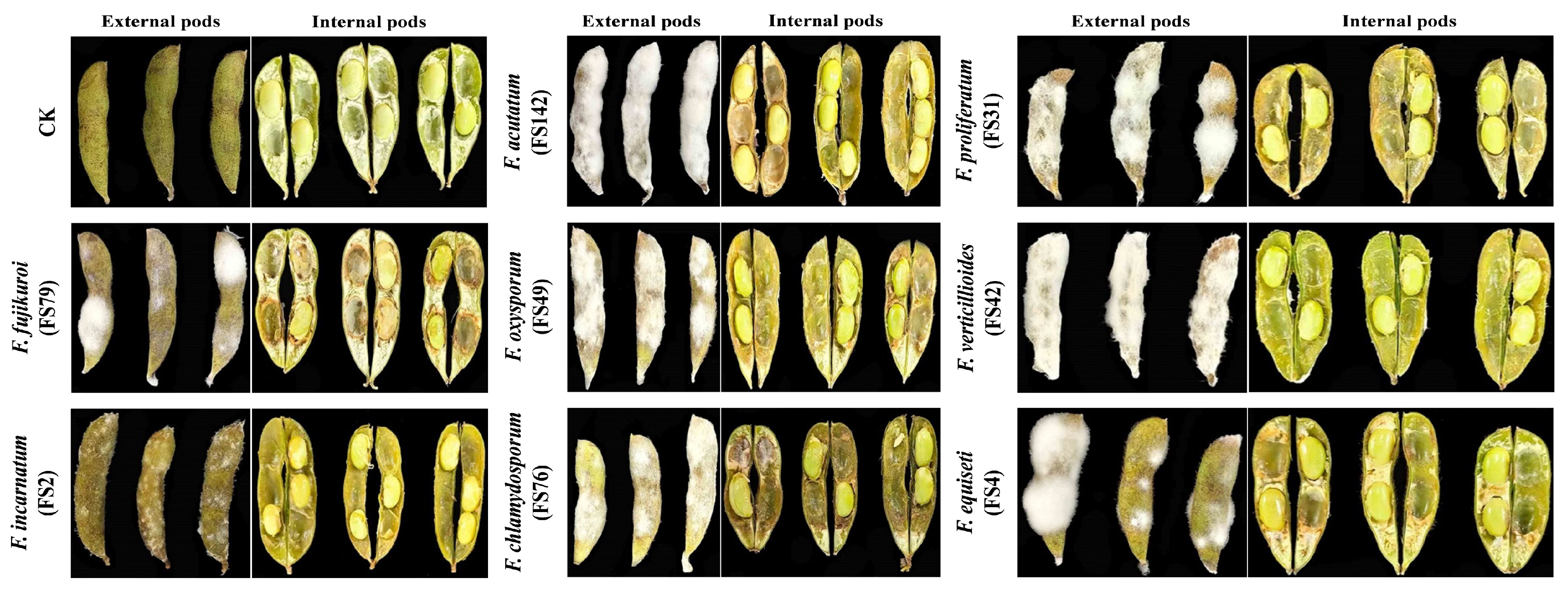 3.5. Pathogenicity of Fusarium Species on Soybean Pods and Seeds